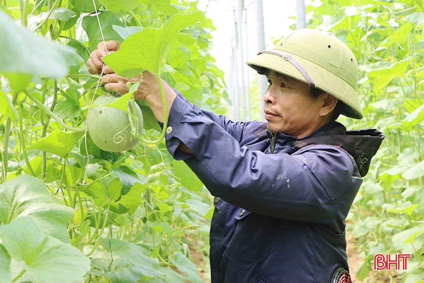 Mô hình sản xuất dưa lưới theo hướng hữu cơ của anh Võ Văn Ý ở xã Cẩm Bình.