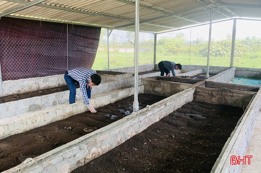 Huyện Cẩm Xuyên có 11 hộ dân tham gia nuôi giun quế với quy mô từ 50 – 100 m2/hộ