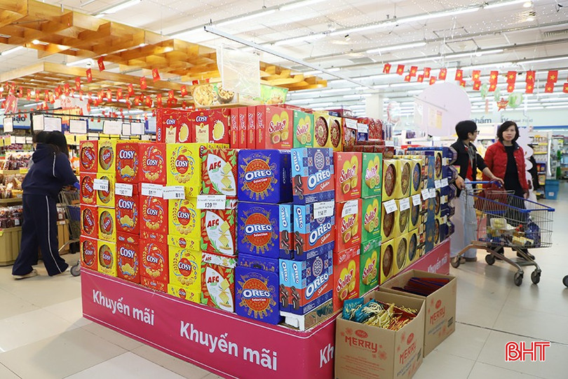 Tại siêu thị Co.opmart Hà Tĩnh – đơn vị bán lẻ chiếm thị phần lớn trên địa bàn, không khí Tết cũng đã bắt đầu hiện diện. Nhiều mặt hàng đặc trưng ngày Tết như bánh đậu xanh thỏi vàng, bánh kẹo hộp thiếc của bộ sưu tập Tết… đã được trưng bày từ sớm với mẫu mã đa dạng, bắt mắt. Các khu vực trưng bày được thiết kế nổi bật, thuận tiện cho khách hàng tham quan, tìm hiểu.