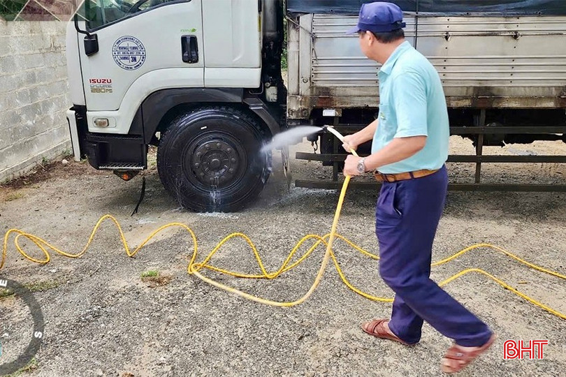 HTX Nông nghiệp sinh thái và dịch vụ Vũ Sơn Đức thường xuyên khử khuẩn khu vực chuồng trại và các phương tiện ra vào nhằm đảm an toàn cho đàn lợn.