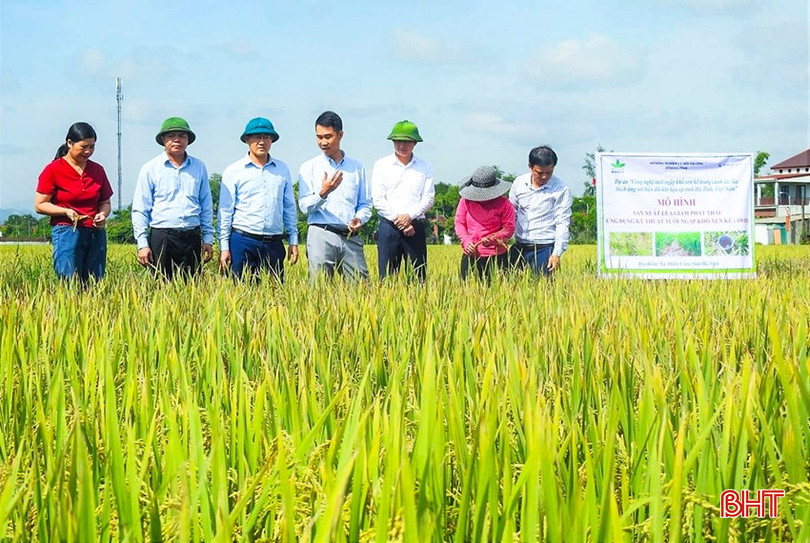 Tiến sĩ Trịnh Đức Toàn - Phó Viện trưởng Viện Khoa học Kỹ thuật nông nghiệp Bắc Trung Bộ cho biết: “Chúng tôi đã ký biên bản ghi nhớ hợp tác triển khai mô hình trong 10 năm tới với tỉnh, hướng đến xây dựng hệ thống sản xuất lúa bền vững, phát thải thấp và có khả năng thích ứng tốt với biến đổi khí hậu. Đây cũng là giải pháp quan trọng để thực hiện Đề án “Sản xuất giảm phát thải trong lĩnh vực trồng trọt giai đoạn 2025 - 2035, tầm nhìn đến 2050” của Bộ NN&MT tại Hà Tĩnh.