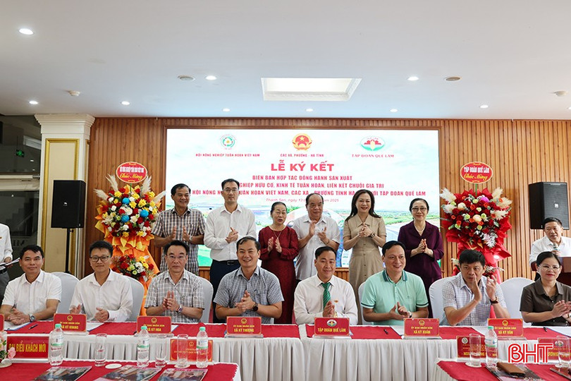 Sáng 13/7, tại tỉnh Hà Tĩnh, Hội Nông nghiệp tuần hoàn Việt Nam, Công ty Cổ phần Tập đoàn Quế Lâm và các xã, phường trên địa bàn tổ chức lễ ký kết biên bản hợp tác đồng hành sản xuất nông nghiệp hữu cơ, kinh tế tuần hoàn, liên kết chuỗi giá trị.