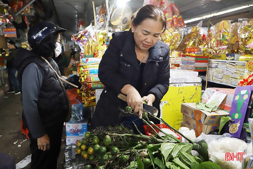 Trong khi đó, cau trầu là mặt hàng ghi nhận mức giá cao hơn so với mọi năm. Bà Lê Thị Hòa, tiểu thương tại chợ Hà Tĩnh cho biết: “Dịp này cau trầu đắt hơn do 2025 là năm nhuận nên đa số cau bị già, nguồn hàng ít. Giá cau hiện từ 8- 10.000 đồng/quả. Riêng các bộ lễ vàng mã cúng ông Công, ông Táo, sức tiêu thụ cao. Tôi nhập về khoảng 170 bộ, nhưng đã bán hết từ trưa ngày 22 tháng Chạp".
