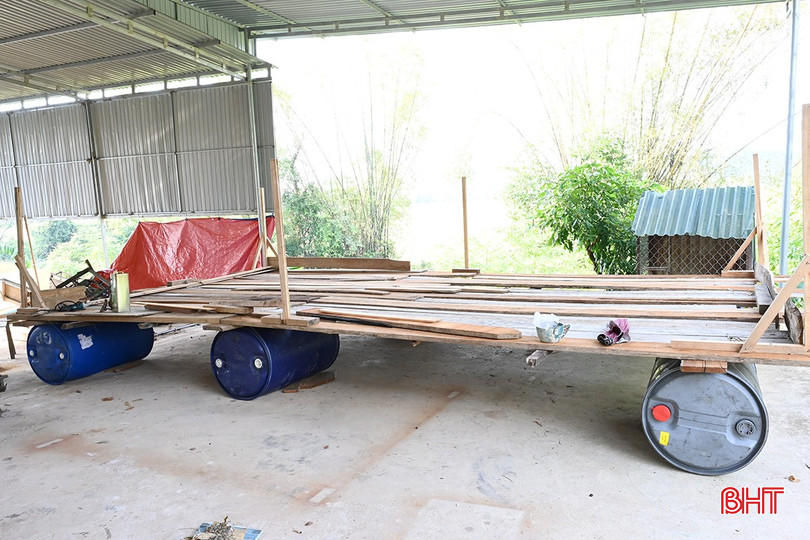 Ở vùng rốn lũ, anh Sinh cũng chủ động làm nhà phao để sẵn sàng đưa ếch tránh lũ.