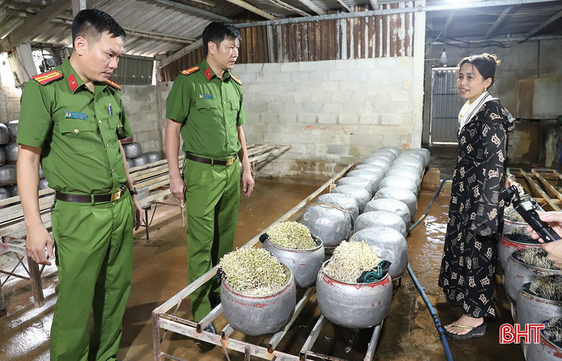 Trước đó, vào hồi 9h ngày 21/9, qua công tác nắm tình hình, tổ công tác Phòng Cảnh sát Kinh tế, tham nhũng, buôn lậu và môi trường Công an tỉnh Hà Tĩnh chủ trì phối hợp với Chi cục Phát triển nông thôn và Quản lý chất lượng (thuộc Sở NN&MT) kiểm tra, phát hiện tại hộ kinh doanh Quách Thị Trần Tuyết (số nhà 05, ngõ 121, đường Phan Chánh, TDP Tiền Giang, phường Thành Sen, tỉnh Hà Tĩnh) sử dụng chất cấm là “nước kẹo” (tên hoá học 6-benzy laminopurine, viết tắt là 6-BAP) để sản xuất 472kg giá đỗ xuất bán ra thị trường Hà Tĩnh.