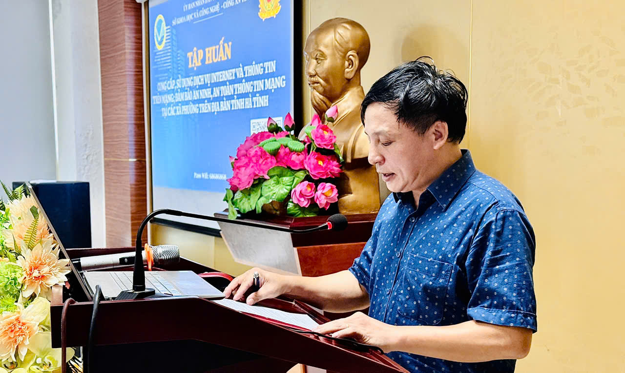 Ông: Nguyễn Thanh Lâm – Phó giám đốc Trung tâm Khoa học Công nghệ &CĐS Hà Tĩnh trình bày Công tác quản lý nhà nước về cung cấp, sử dụng dịch vụ internet và thông tin trên mạng.
