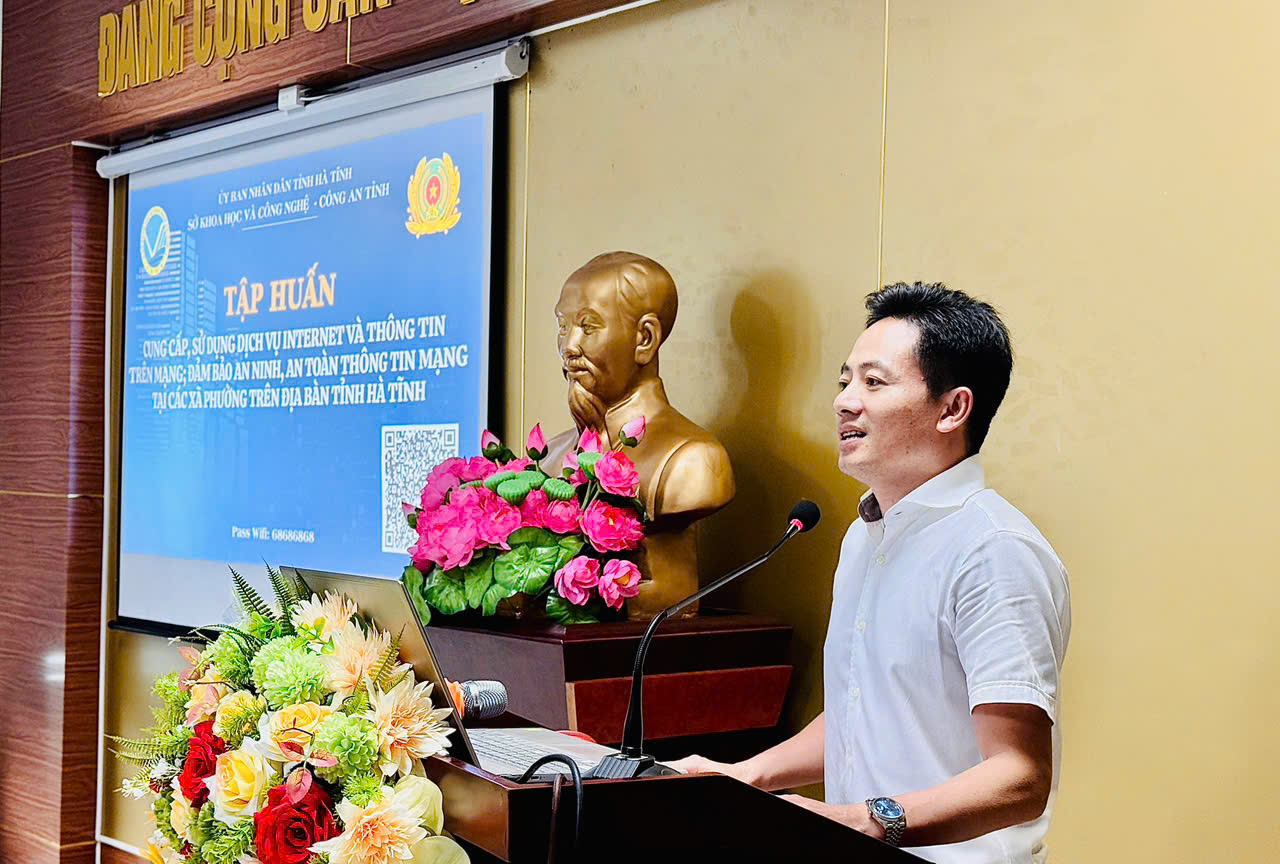 Ngày 24/7, Sở Khoa học và Công nghệ phối hợp Công an tỉnh tổ chức Tập huấn công tác quản lý tên miền, giám sát, đo lường mức độ cung cấp và sử dụng dịch vụ Chính phủ số (EMC) và công tác quản lý, vận hành, xây dựng hồ sơ về An toàn thông tin cho các hệ thống tại các xã, phường mới trên địa bàn Hà Tĩnh.