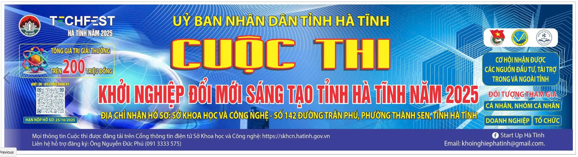 Mẫu hồ sơ dự thi và thông tin về Cuộc thi được đăng tải trên Cổng thông tin điện tử của Sở Khoa học và Công nghệ: https://skhcn.hatinh.gov.vn/