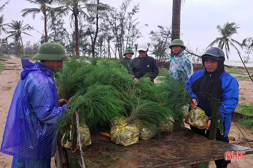 Khôi phục tình trạng gãy đổ và hư hại nhiều cây trồng ven biển, xã Tiên Điền (Hà Tĩnh) đã huy động lực lượng trồng 10.000 cây phi lao dọc bờ biển tại Khu du lịch Xuân Thành.