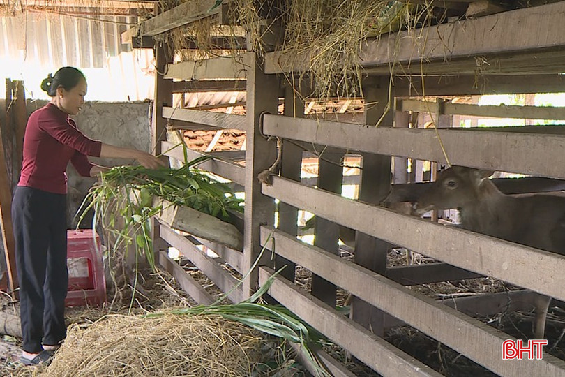 Nhờ xây dựng chuồng trại lên cao nên bà Nguyễn Thị Hoa ở xã Hương Phố đã phát triển chăn nuôi hươu ổn định.